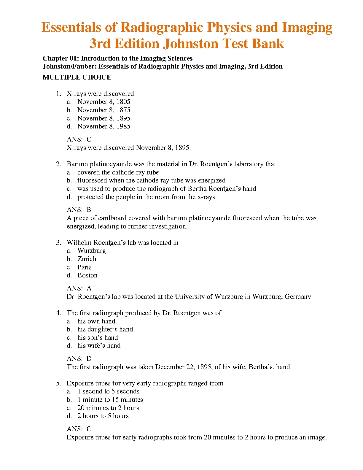 test bank for johnston: essentials of radiographic physics and imaging, 2nd edition. download on www.leakedexams.com ins...