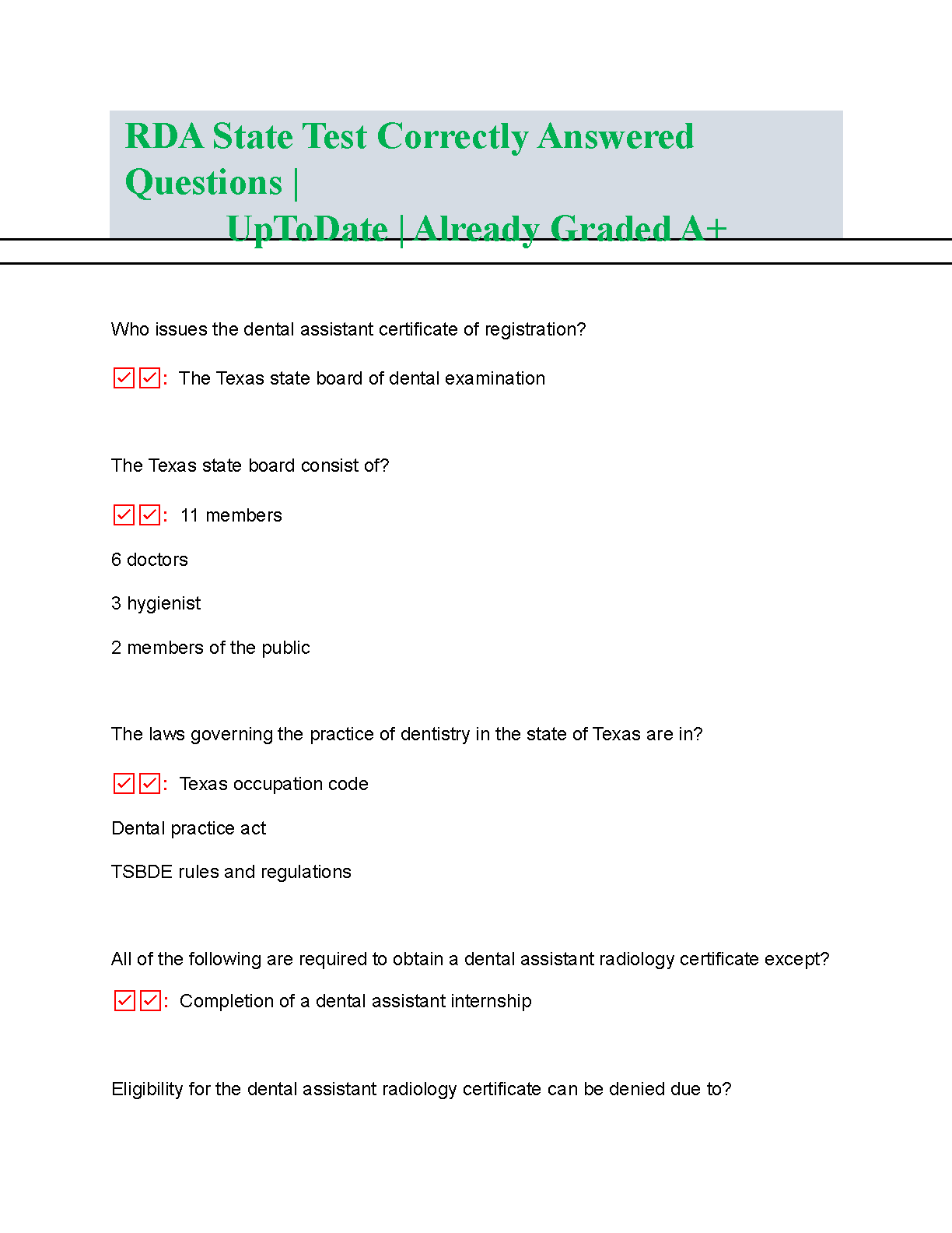 pass your rda state exam on the first attempt with this comprehensive guide featuring correctly answered questions, alre...