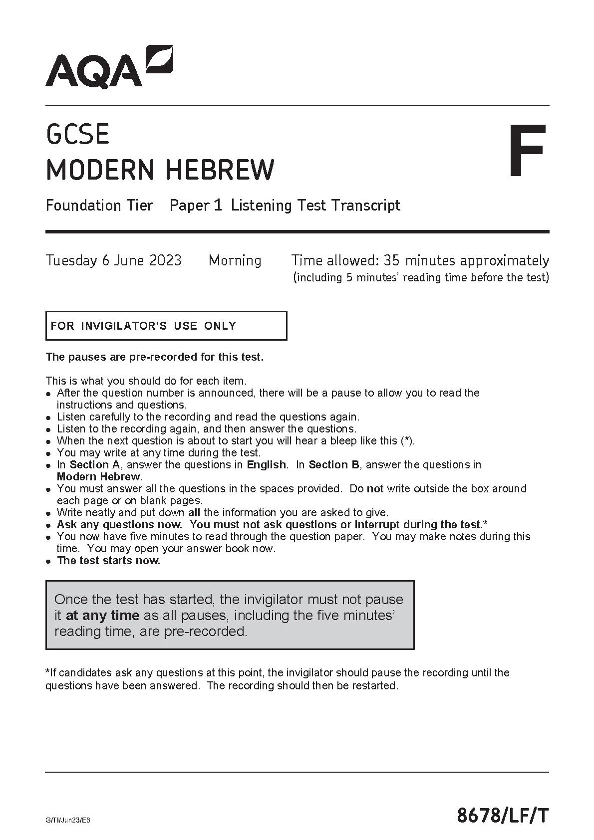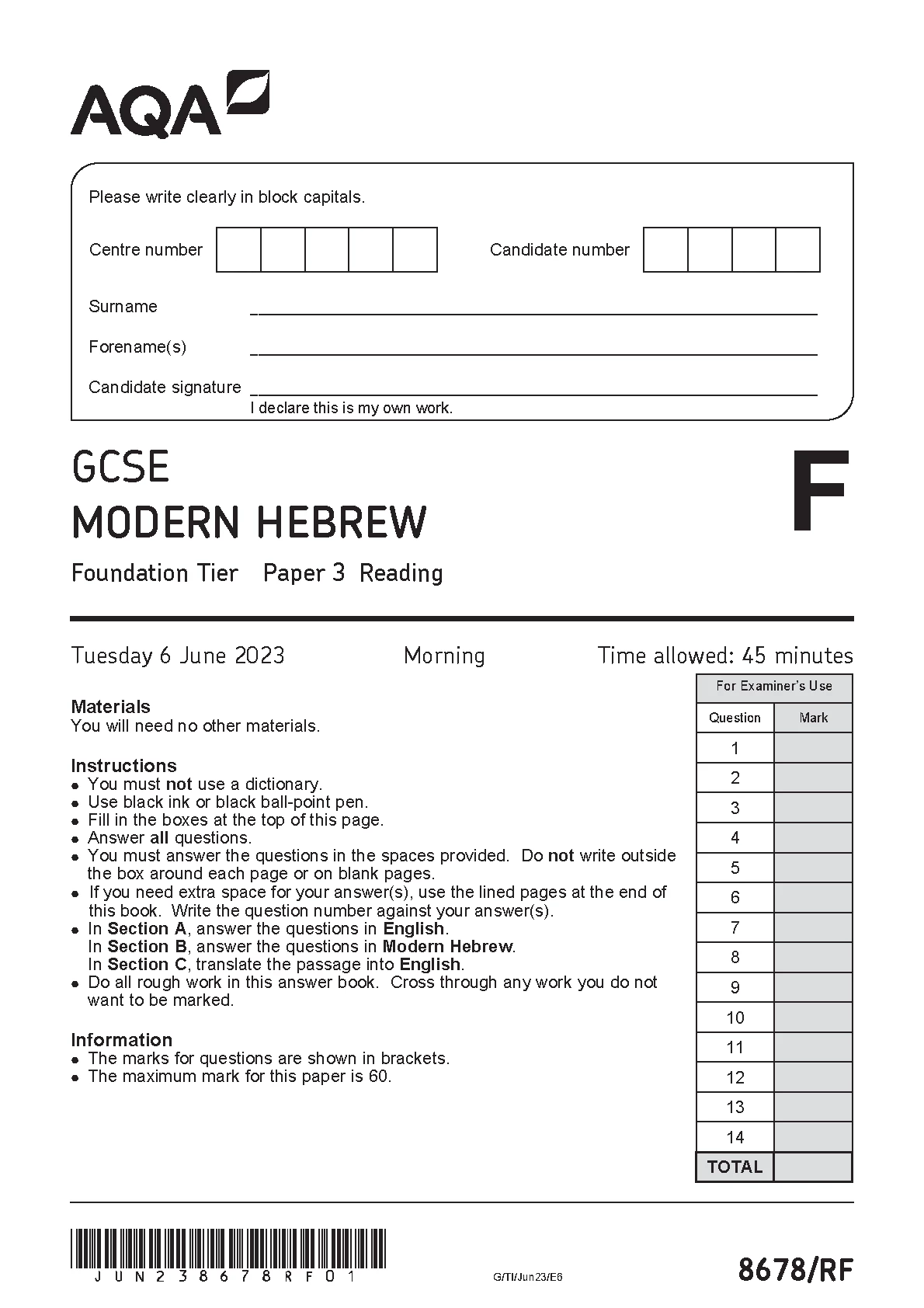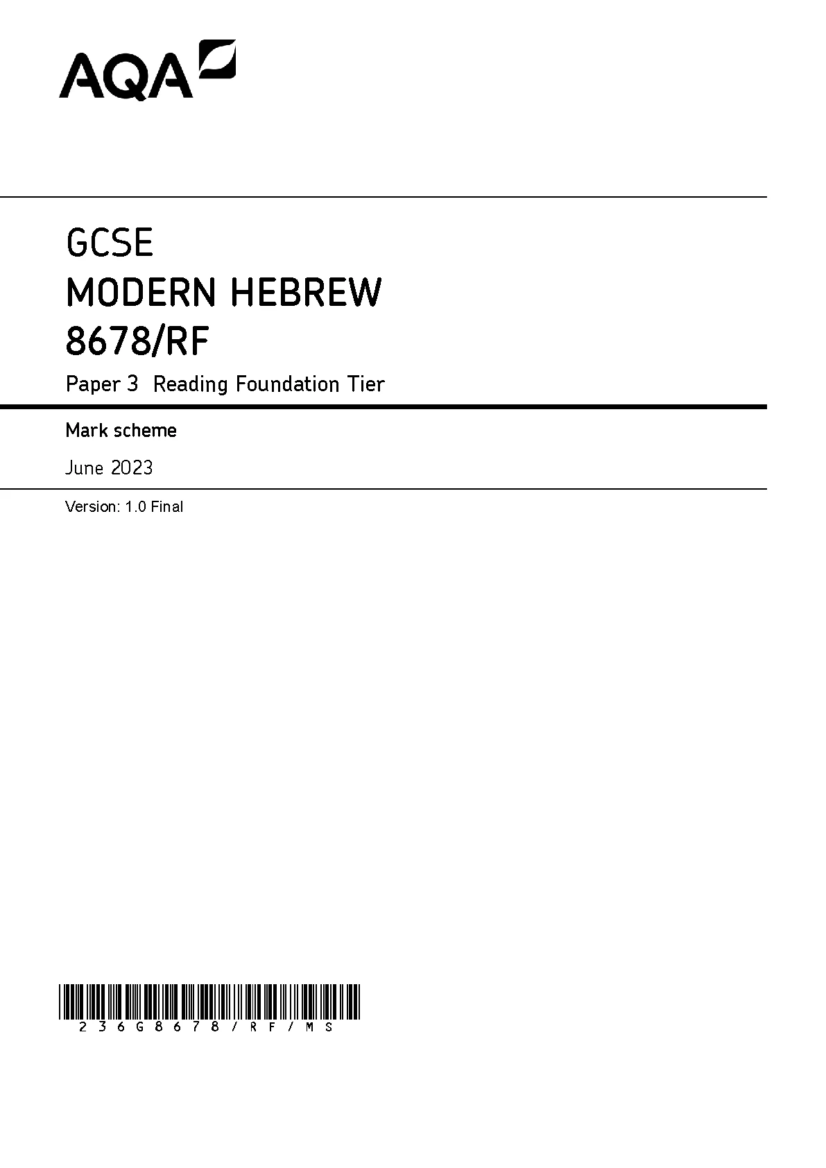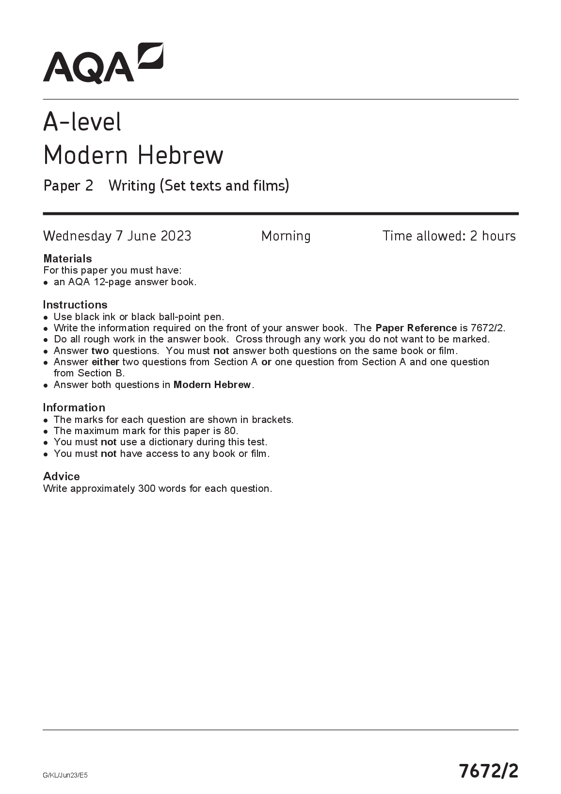 aqa a level modern hebrew paper 1 insert 2023 (7672/1: reading and writing). download official and verified aqa a level...