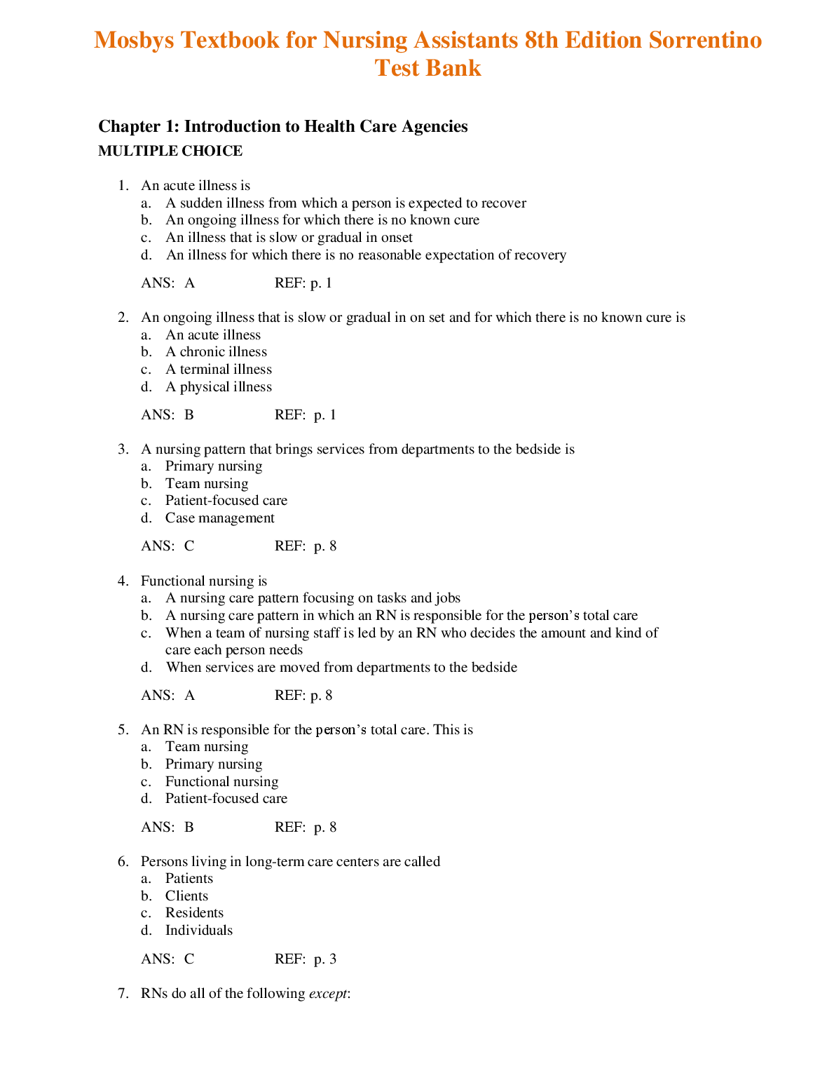 test bank for sorrentino: mosby’s textbook for nursing assistants, 9th edition. download on www.leakedexams.com instantl...