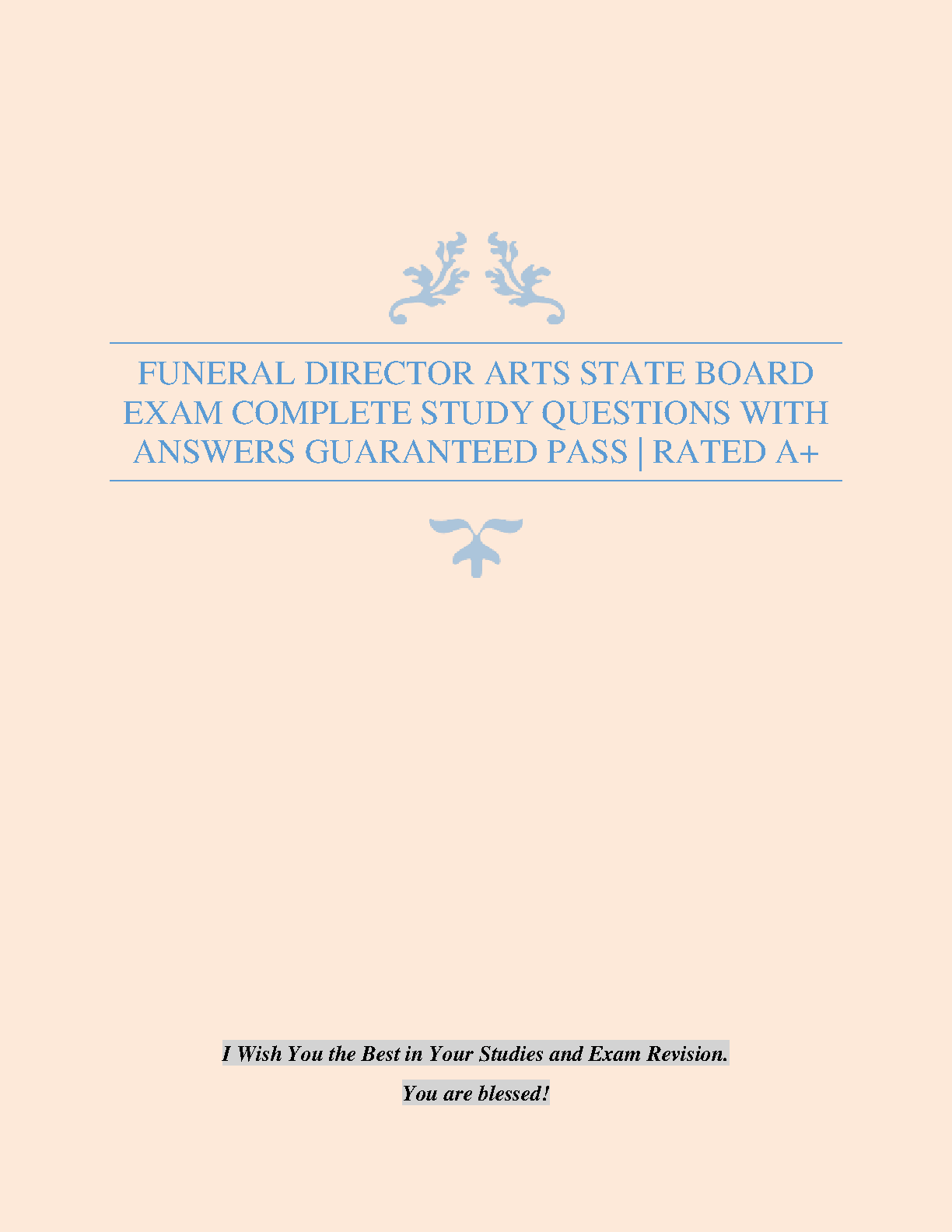 Funeral Director Arts State Board Exam: Complete Study Questions with Answers - Guaranteed Pass. Funeral Director Arts State Board Exam: Complete Study Questions with Answers - Guaranteed Pass TEST BANKS