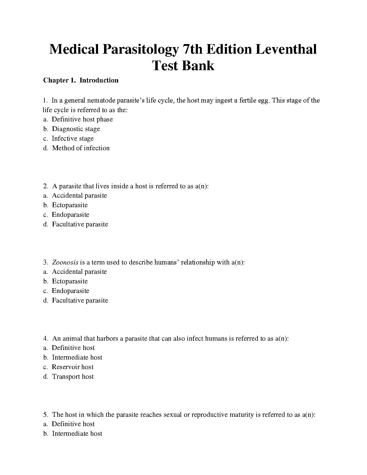 test bank for medical parasitology 7th edition by ruth leventhal and russell f. cheadle