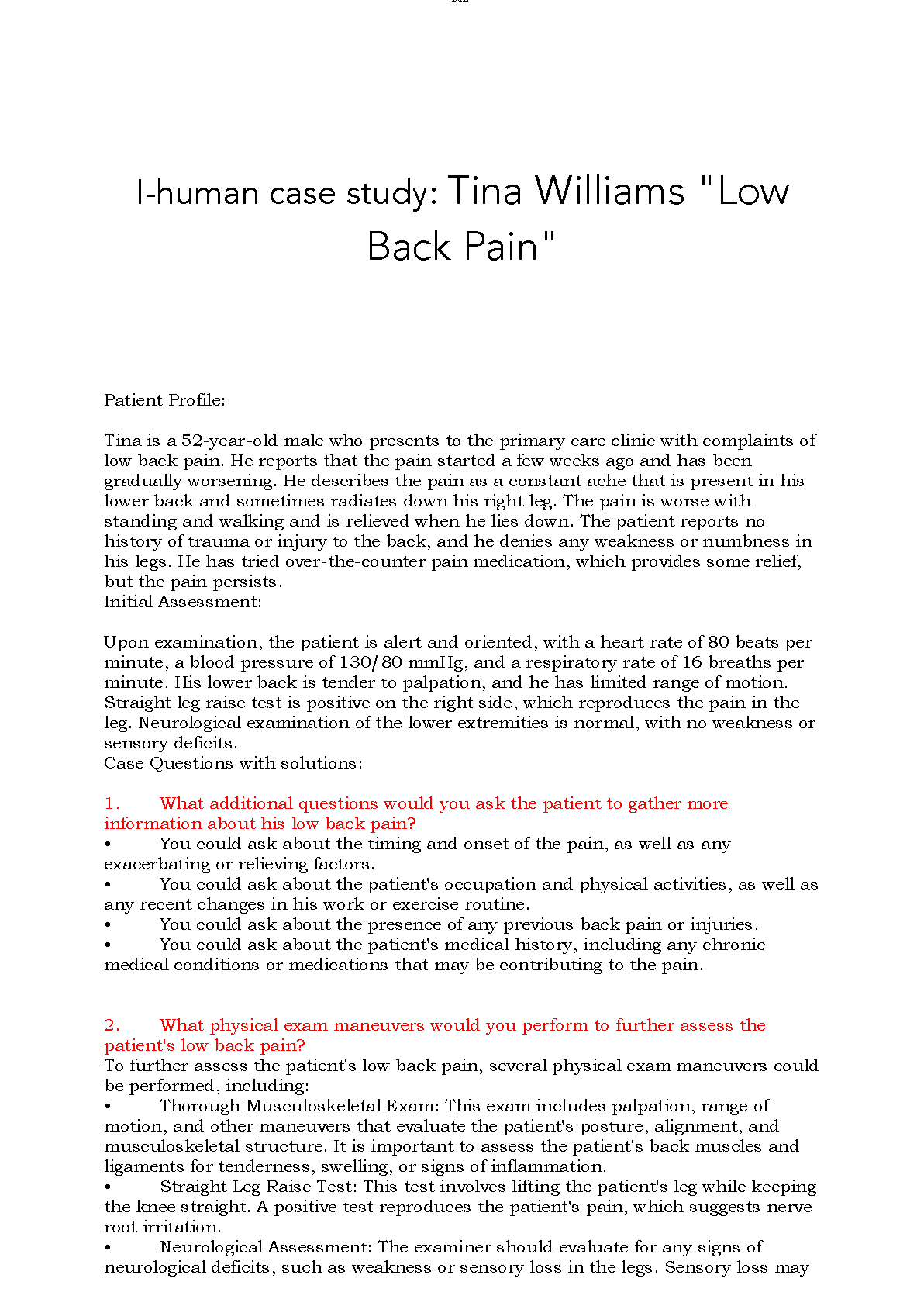 master the i-human case study of tina williams, experiencing low back pain. this comprehensive guide, perfect for the 20...